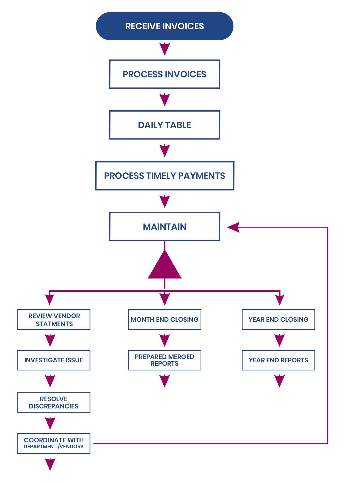 - Work closely with internal departments and external vendors to resolve any payment issues or discrepancies.