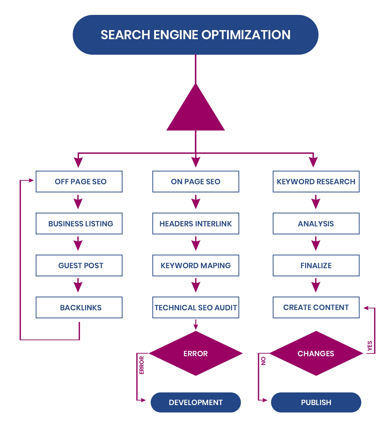 • Ensure website content is relevant and keyword-focused while maintaining technical health for search engine optimization.